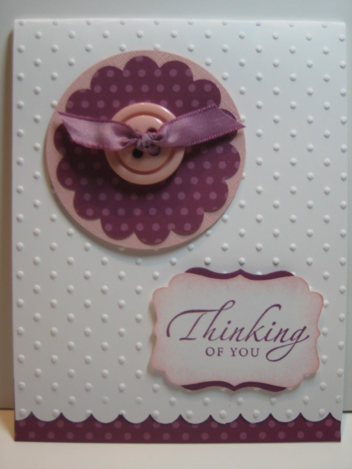 The sentiment comes from the Level 3 hostess set Occasional Quotes. It was punched with the 1-3/4" x 7/8" large oval punch and layered on an oval scallop.